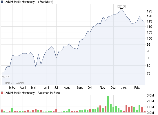 Unverändert positiv erachte man die breite Diversifizierung des weltweit führenden Luxuskonsumherstellers, denn alle Geschäftsfelder hätten zum organischen Wachstum beigetragen. Besonders deutlich sei der prozentuale Zuwachs im kleinsten Segment Uhren&Schmuck mit 19% ausgefallen, da neue Produkte vorgestellt worden seien. In der Sparte Weine&Spirituosen sei das organische Plus von 1% eher schwach gewesen und durch Preissteigerungen und Volumenrückgänge erreicht worden. Die Sparten Mode&Leder mit 14%, Parfums&Kosmetik 13% und Einzelhandel mit 15% würden den unverändert soliden Geschäftsgang kennzeichnen.