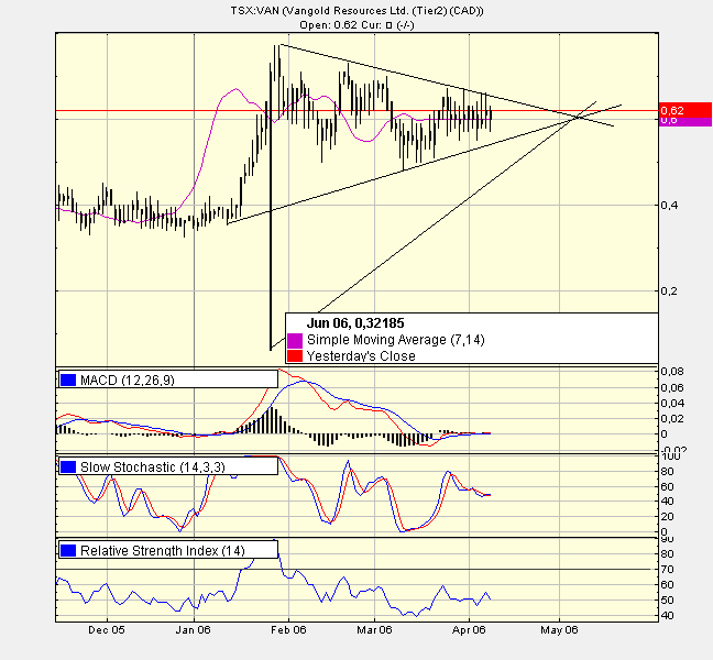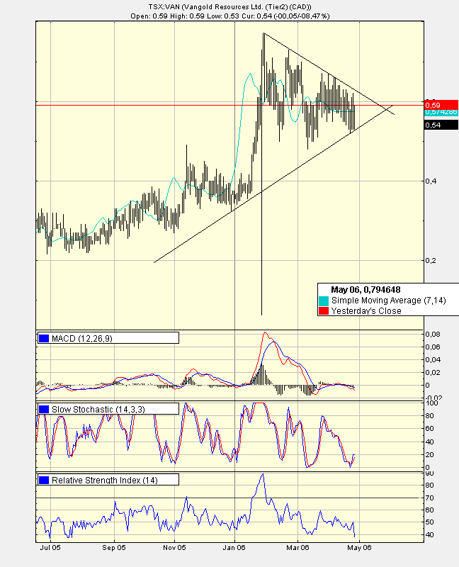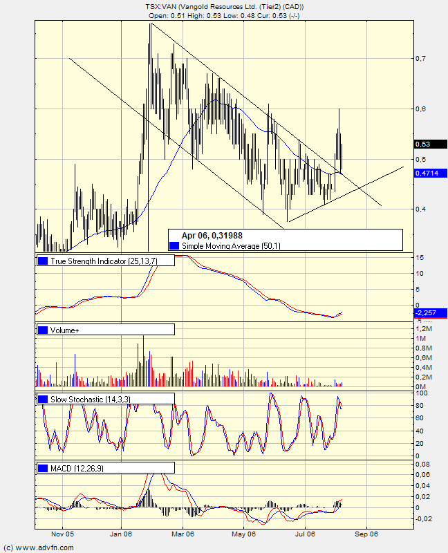 In addition to the above projects in PNG a program is also planned for 2006 at the Feni Islands (50% Vangold). In Uganda, Vangold recently announced an acquisition of 90% of seven rare metal mines through its subsidiary Horn Rare Metals Ltd. Vangold also has licenses covering over 60 sq km in the prospective Kilembe copper/cobalt belt, licenses covering over 300 sq km in the Kilo Moto region and licenses covering over 287 sq kms in the Kafunzo area. The Ugandan government is currently spending US$42 million of airborne geophysics in the area of Vangold's licenses.