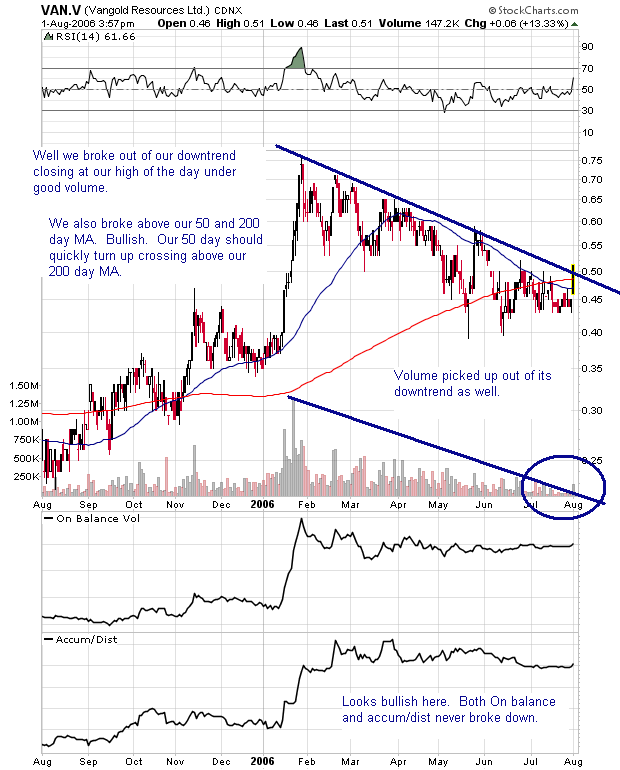 Vangold's oil and gas drilling programs in Alberta, Canada, include the Killam North oil field. Vangold is currently planning high impact gas well drilling on three other projects this summer. As a result of Vangold's oil and gas investments, Vangold has reported its 2006 first quarter revenues was $948,764, an increase of 875% over the same period for 2005. Vangold is continuing to expand its oil and gas interests.