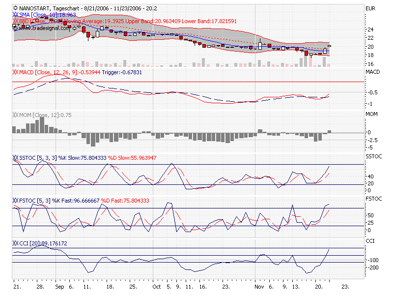 kolegen von mir die bei Goldman- Sachs und Merriy Lynch arbeiten und die berater der einzelnen banken meinen das der Nanosector (inbegriffen Nanostart) der vielversprechenste Markt 2007 wird also wer noch nicht dabei ist der solte rein mein kurzziel bis ende dezember 35Euro konservativ gesehen.