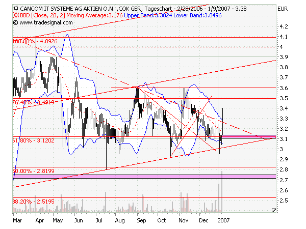 Die CANCOM-Gruppe hat in den ersten neun Monaten des laufenden Geschäftsjahres Umsatz und Ergebnis weiter gesteigert. Besonders erfreulich entwickelte sich nach Unternehmensangaben dabei das dritte Quartal 2006. Grund der positiven Geschäftsentwicklung sei unter anderem die erfolgreiche Ausweitung der Aktivitäten im Bereich IT-Dienstleistungen, hieß es in einer Ad-Hoc Mitteilung vom Montag.