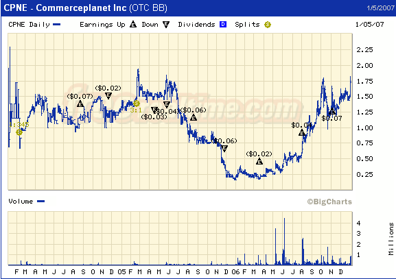 CommercePlanet hat im Q1/2006 den Turnaround vollzogen, nachdem man in 2005 noch defizitär war. Seitdem wächst man nahezu unaufhaltsam, was die u.a. Tabelle eindrucksvoll belegt. Man publiziert Quarterly-Results, eine GuV bzw. Bilanz habe ich aber nicht gefunden. Könnte damit zusammenhängen, dass man erst seit Ende Juni 2006 notiert (zumindest in Frankfurt). Man ist seit dem Q3 offensichtlich komplett schuldenfrei, nachdem alle Forderungen aus dem operativen CashFlow getilgt wurden.
