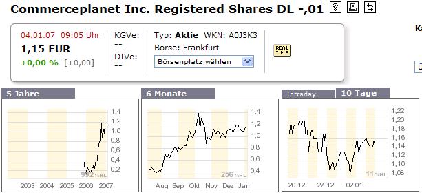 Möchte hiermit die Diskussion über ein sehr interessantes Unternehmen namens CommercePlanet eröffnen (WKN A0J3K3). Ich habe mal verschiedenen Informationen zusammengetragen und konnte äußerst interessante Informationen finden – und wundere mich sehr, weil ich bisher noch keinen „Haken“ an diesem Investment finden konnte …