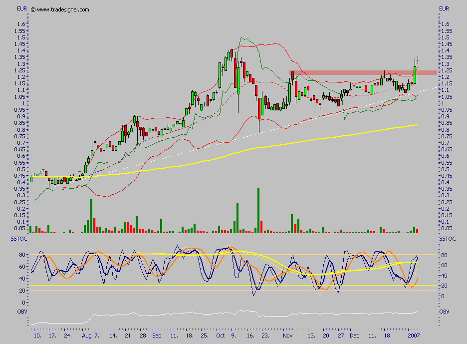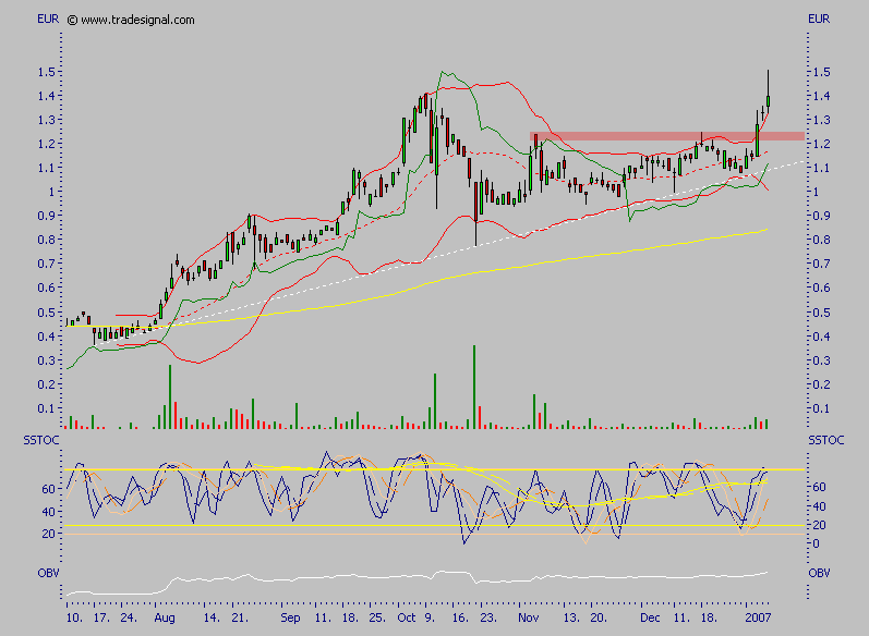 Der Aktienkurs hat sich seit Notierung in Frankfurt von 0,35 € auf 1,39 € vervielfacht und ist seit Oktober in einer Seitwärts- bzw. Konsolidierungsphase (derzeitiger Kurs 1,15 €). Gehandelt werden die Stocks neben Frankfurt, Stuttgart und Bremen vor allem an der NASDAQ OTC. Das Volumen liegt im 6-stelligen Bereich.