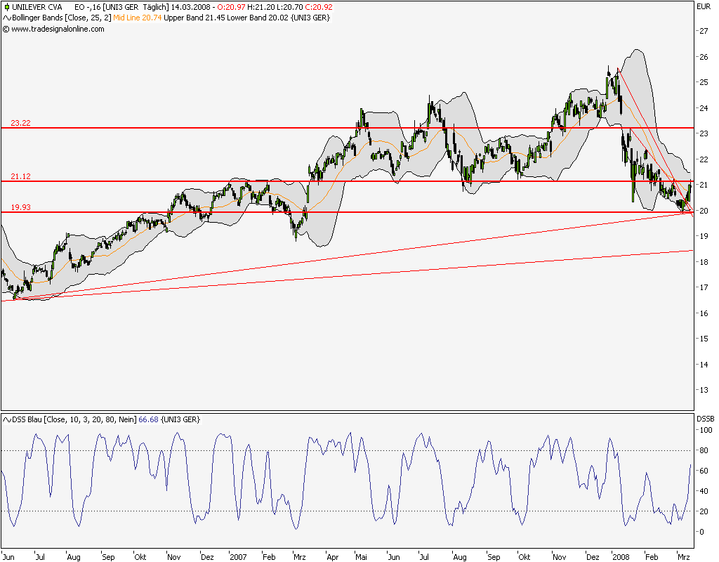 Daher vergeben die Analysten der Credit Suisse weiterhin das Rating "underperform" für den Anteilschein von Unilever. (Analyse vom 13.03.08)