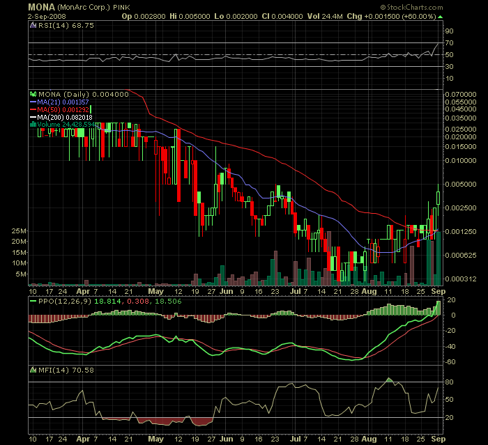 MonArc Corporation (Pink Sheets: MONA - http://finance.yahoo.com/q?s=MONA.PK ) (Tue, Sep 2, 2008, 6:00am ET)