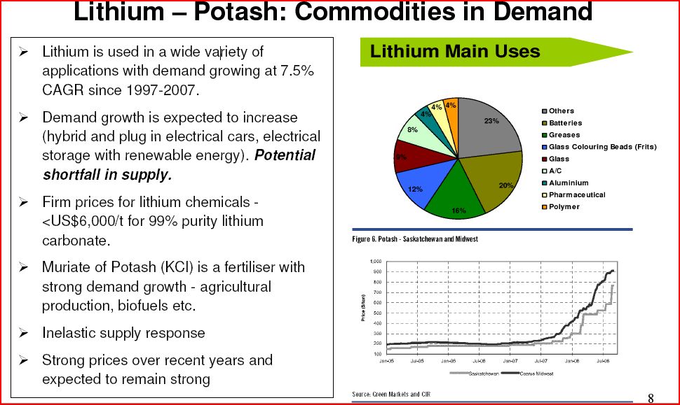 lithium carbonate equivalent and 4.1 million tonnes of potash has been estimated