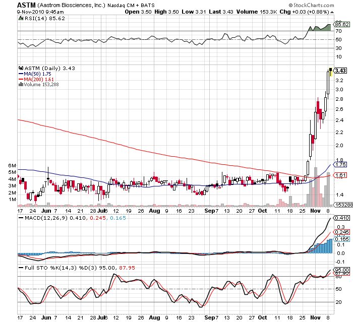 Aastrom Presents Positive Second Interim Analysis of Phase 2b RESTORE-CLI Clinical TrialCompany Continues Its Plans to Rapidly Move Into a Phase 3 Program in 2011 ANN ARBOR, Mich., Nov. 18, 2010 (GLOBE NEWSWIRE) -- Aastrom Biosciences, Inc. (Nasdaq:ASTM), a leading developer of expanded autologous cellular therapies for the treatment of severe cardiovascular diseases, today announced that an interim analysis of all 86 patients enrolled in the company's Phase 2b RESTORE-CLI clinical trial shows that the study achieved both its primary safety endpoint and primary efficacy endpoint of time to first occurrence of treatment failure. The findings related to time to first occurrence of treatment failure were statistically significant (p=0.0132). Further analyses show a clinically meaningful reduction of 56% in treatment failure events. The RESTORE-CLI trial is the largest fully controlled cell-therapy study ever conducted in critical limb ischemia (CLI). This interim analysis includes results from all 86 patients who were randomized and enrolled in the trial, 72 of whom were eligible for treatment and have completed at least six months of follow-up and 62 of whom completed 12 months of follow-up. Analysis of the data for amputation-free survival, a secondary measure which the study was not powered to demonstrate, showed a clinically meaningful reduction in event rates of 24%, but did not show statistical significance (p=0.5541). Importantly, analysis of the data between the interim results shows similar treatment event rates (22-25%) for the treated group, but an unexpected reduction in event rates for the control group from 50% to 29%. In February 2010, Aastrom reported results from an interim analysis of data from this trial that showed a statistically significant clinical benefit favoring Aastrom's autologous cellular therapy for the first 46 patients enrolled in the trial, in both time to first occurrence of treatment failure (a composite endpoint consisting of major amputation of treated leg, all-cause mortality, doubling of total wound surface area from baseline and de novo gangrene; p=0.005) and amputation-free survival (p=0.038). Results of the second interim analysis were presented today in a non-CME satellite session of the VEITHsymposium™ in New York City by principal investigator Richard Powell, M.D., chief of vascular surgery at Dartmouth-Hitchcock Medical Center in Lebanon, NH. An archived webcast of the presentation will be available at www.aastrom.com/investor.cfm. "I am very optimistic about the treatment response rates we have seen in patients in this trial so far. These interim data suggest that there is a clear and clinically meaningful therapeutic effect at work in treated patients. I look forward to examining the benefits of this treatment in the context of a larger Phase 3 study," said Dr. Powell. The two interim analyses were done to provide information to support the design and execution of Aastrom's Phase 3 CLI program. In October, Aastrom announced plans to initiate a Phase 3 CLI clinical development program under special protocol assessments (SPA) with a Fast Track designation by the FDA. "We believe these interim results provide further evidence supporting the use of our autologous cell therapy to treat patients with this devastating disease," said Tim Mayleben, president and CEO of Aastrom Biosciences. "As expected, these data provide essential guidance as we refine and finalize the sample sizes and patient selection criteria for our Phase 3 program." |