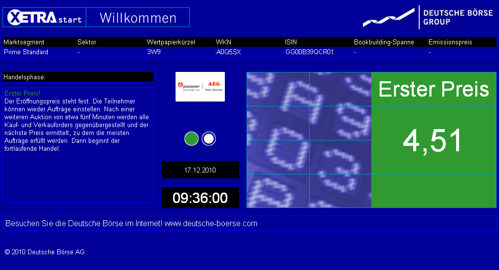 3W Power/AEG Power Solutions meldet vorläufige, nicht testierte Geschäftszahlen für 2011