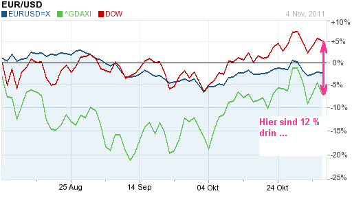 Meine zweite These: Commerzbank hat durch die Krise nicht mehr viel zu fürchten; jedenfalls, soweit es die heute bekannten Tatsachen anbelangt. Rund 13 Mrd. Euro beträgt aktuell noch der Portfolioanteil von Anleihen der PIIGS-Staaten. Davon sind die Griechenpapiere abzuziehen, da sie bereits auf 48% abgeschrieben sind. Bleiben rund 12 Mrd. Euro. Der Anteil der aktuell in Rede stehenden Italo-Anleihen ist mir unbekannt, dürfte sich aber im unteren einstelligen Milliardenbereich bewegen. Selbst wenn auf diesen 50% abgeschrieben werden müssten, wäre das für Coba nicht dramatisch schlimmer, als die Abschreibung im Fall Griechenland. Selbst die Abschreibung sämlicher PIIGS-Anleihen um 50% wären alleine durch die Zinsüberschüsse eines Jahres auszugleichen.