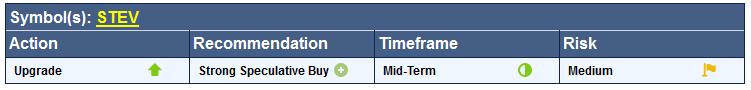 Technically, STEV is upgraded to a strong buy by allotcbb website