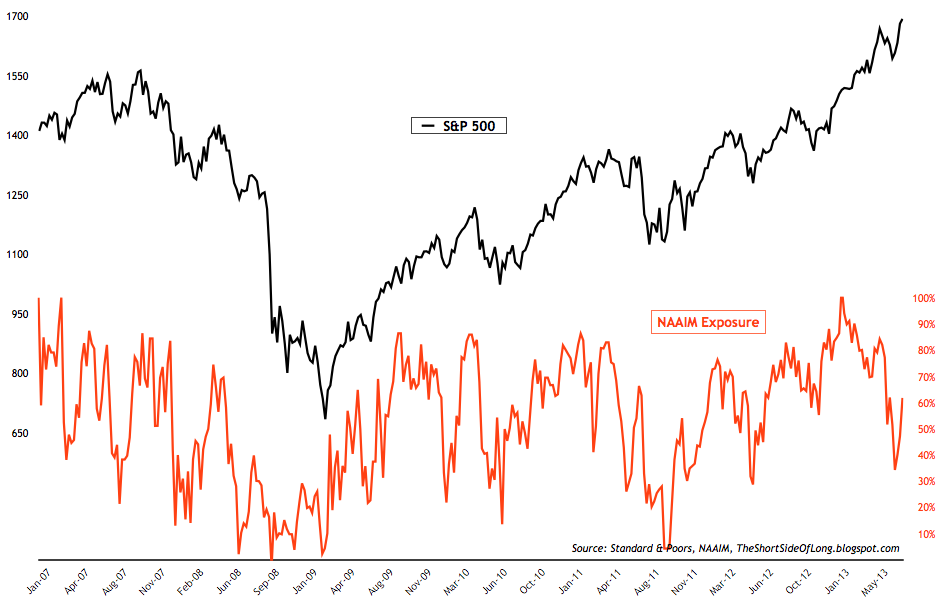 '..We are all prone to recency bias, meaning that we tend to extrapolate recent events into the future indefinitely. As reported by Bespoke, Bloomberg surveys market strategists on a weekly basis and asks for their recommended portfolio weightings of stocks, bonds and cash. The peak recommended stock weighting came just after the peak of the internet bubble in early 2001 while the lowest recommended weighting came just after the lows of the financial crisis. That’s recency bias...'