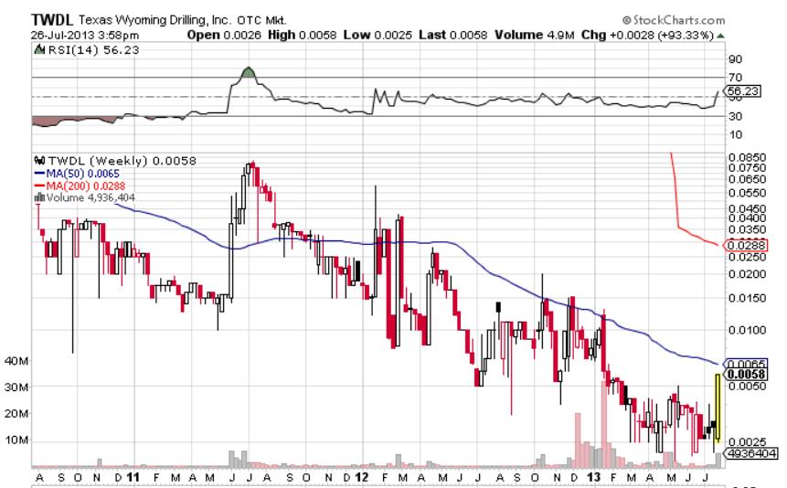 LAS VEGAS, May 6, 2013 /PRNewswire/ -- Texas Wyoming Drilling (OTC Pink: TWDL) announced today that they are in serious negotiations for substantial funding. Once the funding is approved, it will have no effect on share structure. No additional shares will be issued for this purpose.