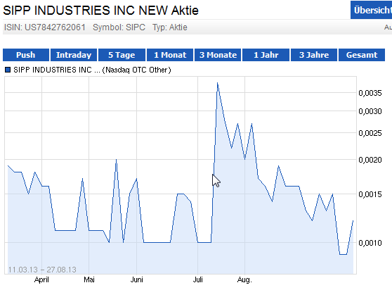 With the incredible success that these American companies are having, many European companies are now rushing to join the U.S. markets in this budding newly legal industry. Inexpensive "shell companies" are quickly being sought out by these European companies in order to quickly and affordably start offering their securities on U.S. public securities markets. There are many of these so-called "shell companies" available for sale, but there are few available with attractive valuations and capital structures. Sipp Industries (SIPC) is one company with an attractive capital structure and valuation that is currently available for a sale and reverse-merger for only $55,000 USD. (Source: http://www.mergernetwork.com/for-sale/...-dtcc-eligible-k/343630.htm)