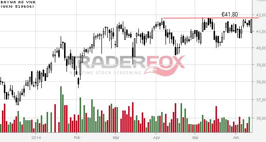 Sollten sich CBS befürchtungen nicht bewahrheiten, wäre Baywa bei 35-36 € ein klarer Kauf. Über 37,7 € zu kaufen, wie BoerseOnline schreibt, macht charttechnisch aber keinen Sinn, da bei 39,5 ja der kräftige Widerstand aus den alten Verlaufstiefs der Seitwärtsbewegung wartet. |