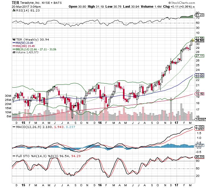 Teradyne ist mit 5 Mrd. USD kapitalisiert. Hauptgeschäft der Firma ist automatisches Test-Equipment für Halbleiter-Hersteller. KGV17e ist 17.
