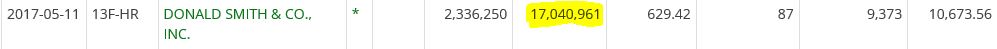 von deren Website: Donald Smith & Co., Inc. is an employee owned investment manager. We are a deep-value manager employing a strict bottom-up approach. We generally invest in stocks of out-of-favor companies that sell in the bottom decile of price-to-tangible book value ratios, and that have significant earnings potential over the next 2-4 years.