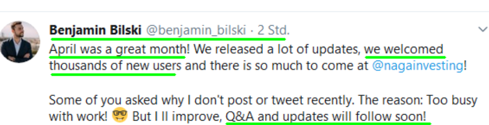 Insofern bin ich mal gespannt, wie der GB 2019 aussehen wird. Der GB 2018 las sich noch gruselig, wenn man sich die Liquidität betrachtet hat. Anscheinend hat Naga aber zumindest beim Umsatz den Schlüssel gefunden, denn der Aufschwung begann nicht erst mit dem Ausverkauf an den Börsen, sondern schon in Q4. Da hat man den gebührenfreien Handel aller möglichen Wertpapierarten hervorgehoben. Ich wundere mich, wie die Naga ohne Werbung an Kunden kommt, zumindest habe ich bis heute nichts gesehen, wenn man die teure Geldverschwendung der Sky-Werbung weglässt, die es bis 2019 gab. ich glaube kaum, dass der Sparkassenkunden bei Naga ein Konto eröffnet hat, nachdem seine Filialbank coronabedingt dicht gemacht hat. Woher kommen die ganzen Neukunden?