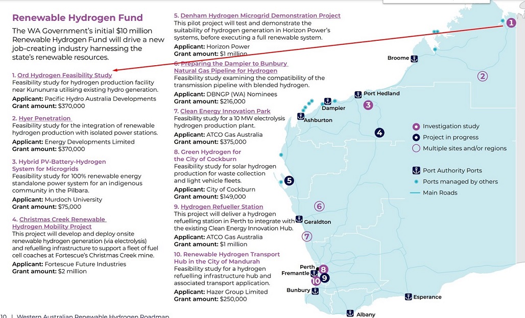 Das Ord Hydrogen Project hat finanzielle Unterstützung vom Western Australia Renewable Hydrogen Fund erhalten.