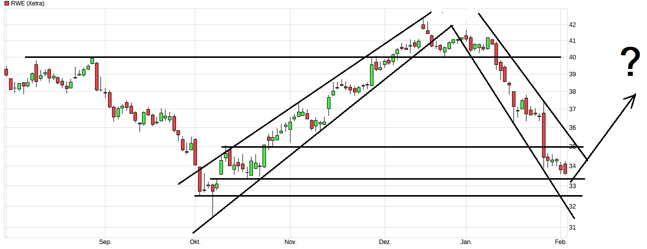 Die RWE-Aktie wies am Tag der offiziellen BaFin-News Verluste aus. Im FSE-Handel ging es für das Papier um Prozent auf EUR abwärts. RWE erreicht derzeit eine Marktkapitalisierung von 25,13 Mrd. Euro. Im Free Float befinden sich derzeit 743.841.024 Papiere.