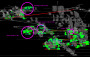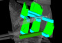 ... Abbildung 2, eine orthogonale Ansicht des Abbaugebiets Austin 1099/1100, welche die geplanten Lagergänge (blau), Strossen (hellgrün) und den Zugang (dunkelgrün) zeigt: