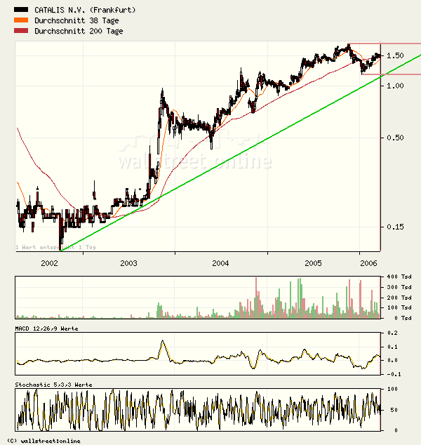 Fundamental sieht es ja nicht schlecht aus - starkes Wachstum bei Umsatz und Gewinn und mit einem KGV von ca. 13 auf basis 2006 (die Spanne beim Gewinn im Ausblick auf 2006 ist ziemlich groß) is Catalis auch noch günstig bewertet.