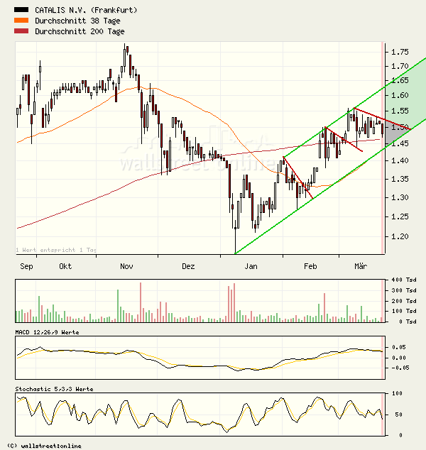 Aber das Orderbuch sieht auf jeden Fall nicht so richtig gut aus und auch von der Charttechnik her gefällt mir Catalis zur Zeit gar nicht. Mittlerweile wurden die 38-, die 100- und die 200-Tagelinie von oben nach unten durchbrochen.