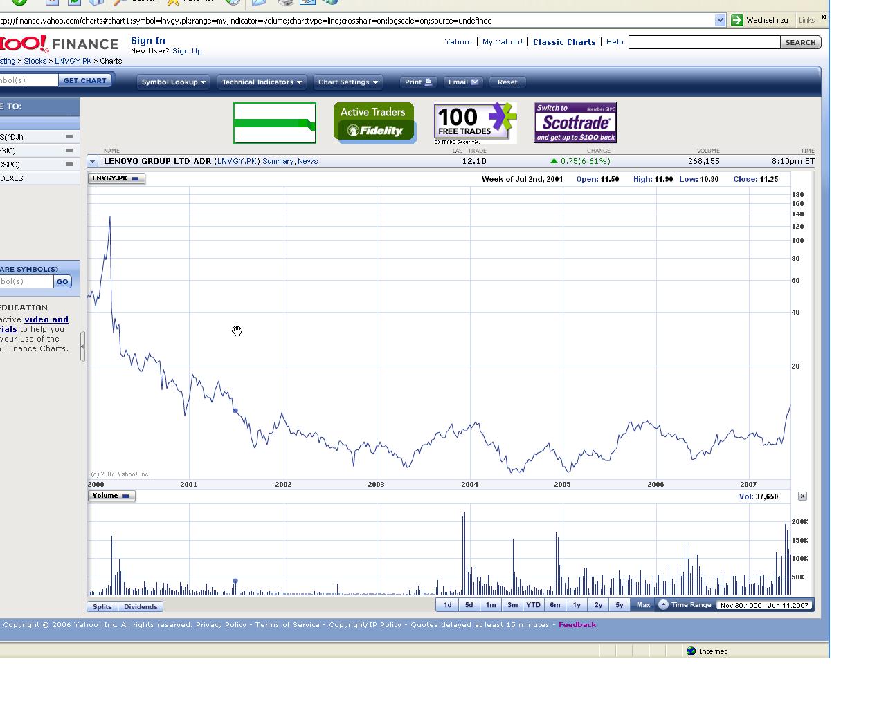 Habe am Freitag meine China Fonds gegen lenovo getausch und meinen Bestand verdoppelt. Die Story soll mir mein Haus bezahlen. Eine weitere Kaufoption habe ich auf deutlich niedrigerem Niveau postiert. Damit möchte ich vor den nächsten Good News zum Tripple ausbauen. Falls die Aktie vorher steigt, bin ich auch nicht sauer. ;-) Beitrag aus GodmodeTrader Lenovo ISIN: HK0992009065 Börse: Frankfurt in Euro / Kursstand: 0,396 Euro Kursverlauf vom 05.03.2004 bis 01.06.2007 (log. Kerzenchartdarstellung / 1 Kerze = 1 Woche) . Kurz-Kommentierung: Die LENOVO Aktie markierte im März 2003 ihr Allzeithoch bei 9,90 Euro. Danach fiel die Aktie stark ab. Im Januar 2005 markierte die Aktie ein Tief bei 0,20 Euro. Bereits mit dem Tief aus dem Mai 2003 setzte eine Bodenbildung ein. Dieser läuft innerhalb einer komplexen SKS ab. Sie dauert immer noch an. Erst ein Ausbruch über die bei 0,44 Euro liegende Nackenlinie würde zum erfolgreichen Abschluss dieser Bodenbildung führen. Gelingt der Aktie dieser Ausbruch auf Wochenschlusskursbasis, dann käme es zu einem mittelfristige Kaufsignal mit rechnerischem Ziel bei ca. 0,93 Euro. Scheitert die Aktie an der Nackenlinie, dann wären Abgaben bis mindestens 0,36 Euro, vermutlich sogar 0,26 Euro zu erwarten. Na, da sind wir doch gar nicht weit von ab...! |