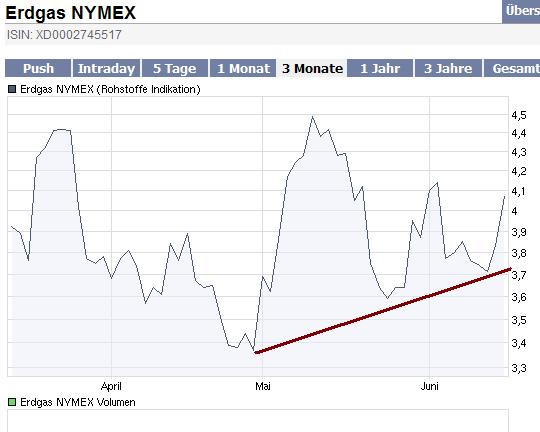 Hier wird argumentiert, die Preisschere zwischen Gas und Öl (Faktor 16) sei zu groß geworden, normalerweise liegt sie bei 8. Daher müsste Gas teurer werden.