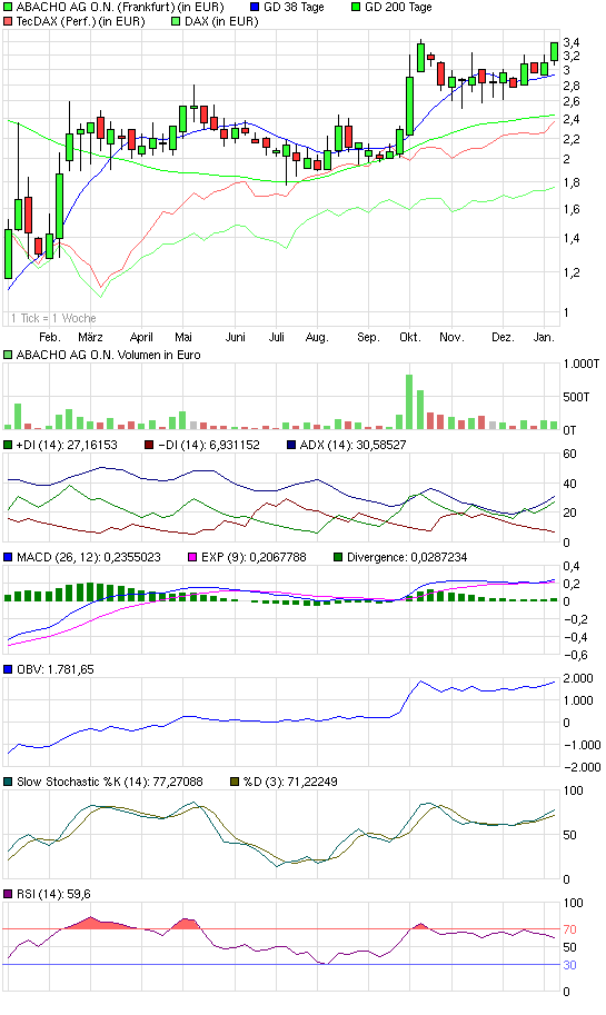 - Abacho ist ein marktenger Wert, der mit kleinen Stückzahlen sowohl nach oben, aber auch nach unten bewegt werden kann (Quelle: http://www.ariva.de/quote/times_and_sales.m?secu=92). Wer also wiederholt nur die eine Richtung dokumentiert, der stellt die Situation meiner Meinung nach nicht objektiv dar.