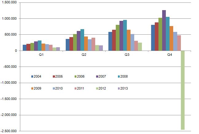 Die Quartalszahlen sind schon etwas mager,oder? Weniger Gewinn zu Q1 und zum Halbjahr 2012. Es ist ja schön das die Werte sich gebesserten haben gegenüber Q1 aber auf der rechten Seite sieht das ganze doch wieder anders aus