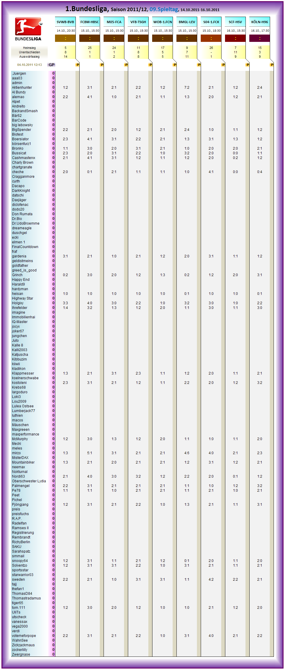1.Bundesliga, Spieltag 09