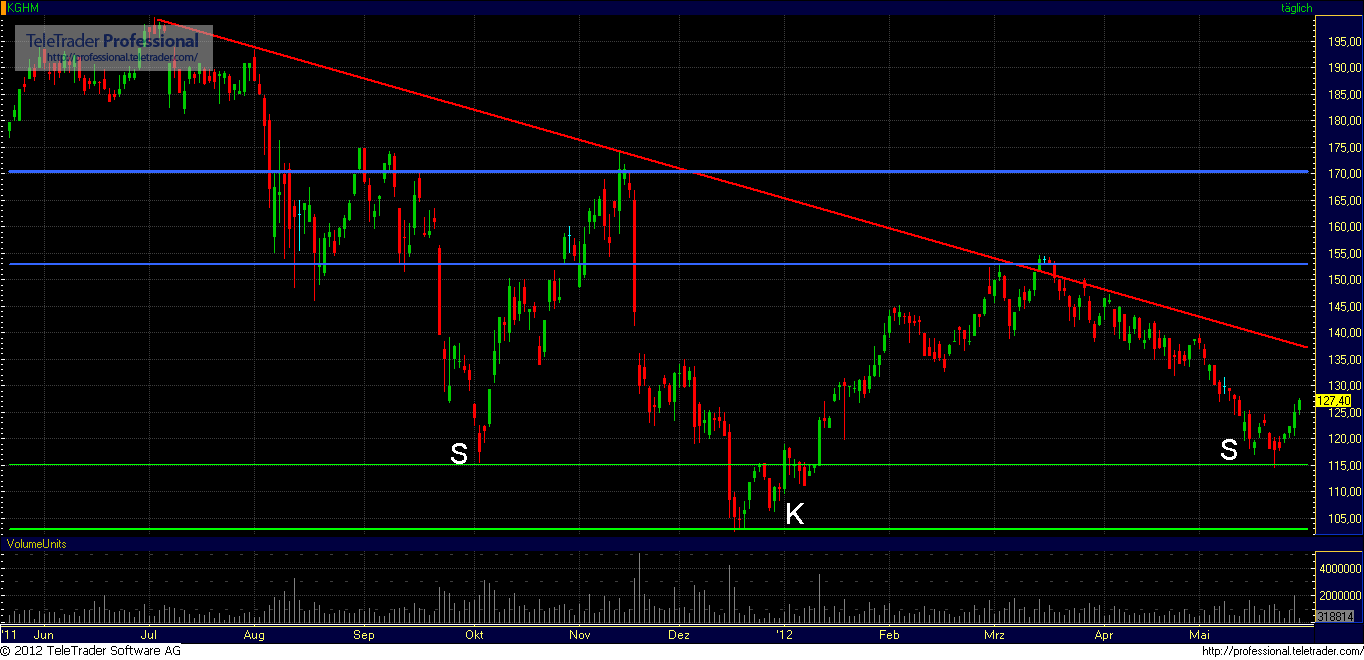 Vor 80 ZL würde ich gar nicht darüber nachdenken, KGHM zu kaufen. Die Dividendenpolititk von KGHM ist sehr unzuverlässig und man verwendet häufig einen Großteil der Gewinne für die Dividendenausschüttung. Die Aktie kam 2009 von ca. 25 ZL und ist immer noch hoffnungslos überbewertet. Spätestens nach der diesjährigen Dividendenzahlung wird dem Anleger dann die saftige Rechnung für die tolle Dividende präsentiert. Hatte die Aktie in meinem Anlegerleben schon xmal und man muß genau wissen, wann man da zuschlägt. Nachfolgend mal eine Übersicht über die Dividendenzahlungen der letzten Jahre: Wypłata dywidendy : Za rok obrotowy* | Dywidenda razem (mln zł) | Dywidenda na akcję (zł) | Dzień dywidendy | Termin wypłaty dywidendy | % zysku przeznaczonego na dywidendę | 2010 | 2 980 | 14,90 | 11.07.2011 | 12.08.2011 | 65% | 2009 | 600 | 3,00 | 17.06.2010 | 08.07.2010 | 25% | 2008 | 2 336 | 11,68 | 16.07.2009 | 06.08.2009: 7,16 zł 06.11.2009: 4,52 zł | 80% | 2007 | 1 800 | 9,00 | 18.07.2008 | 07.08.2008 | 47% | 2006 | 3 395 | 16,97 | 25.06.2007 | 10.07.2007: 8,49 zł 12.12.2007: 8,48 zł | 100% | 2005 | 2 000 | 10,00 | 07.07.2006 | 02.08.2006 | 87% | 2004 | 400 | 2,00 | 08.07.2005 | 02.08.2005 | 29% | 2000 | 200 | 1,00 | 18.07.2001 | 07.08.2001 | 32% | 1998 | 20 | 0,10 | 09.07.1999 | 02.08.1999 | 11% | 1997 | 50 | 0,25 | 25.06.1998 | 10.07.1998 | 10% | *Za lata obrotowe 1999, 2001, 2002, 2003 nie wypłacano dywidendy |