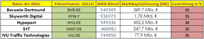 IVU.DE 744850 IVU Traffic Technologies Aktie 77,95 20% D71.FA A0LAXT BDI Bioenergy 48,43 25% HYQ.DE 549336 Hypoport 441 30% M3B.DE A0KF6S Mic AG 20,44 25%