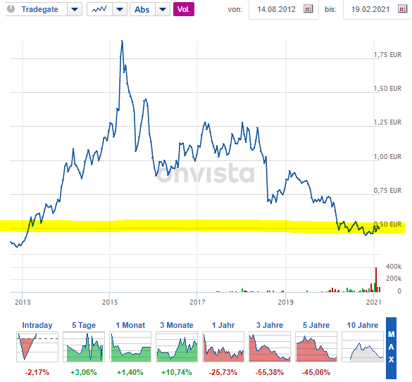 So, es ist soweit: Heute früh bin ich runter von der Seitenlinie und mit einer ersten, kleinen Position hier eingestiegen. Gedanklich gehe ich long mit diesem Titel, der wohl noch ein paar Jahre brauchen wird, bis er sein volles Potential entfaltet - dank der hohen Dividende läßt sich diese Zeit aber hoffentlich gut überdauern.