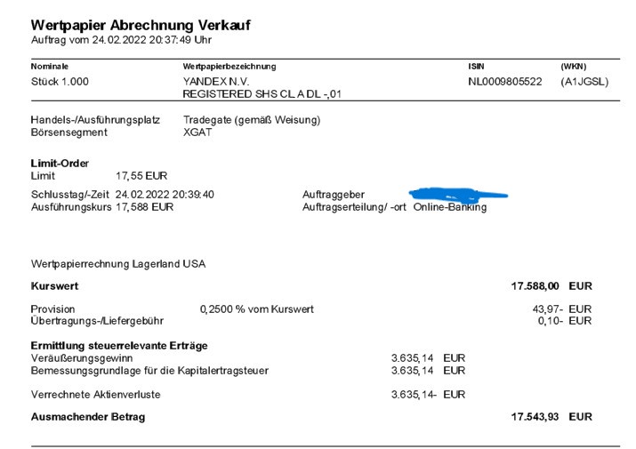 Meine Yandexpositon stand vor dem Krieg auch bei 150 % im Plus. Ok, das waren bei mir dann insgesamt 5000 EUR  Kleinanlegergeld. Jetzt steht alles wieder bei knapp 2000 EUR und damit +/- 0.