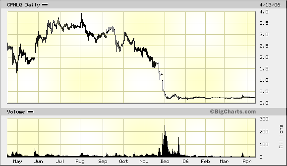 Bei Calpine standen die Anleihen zuletzt bei 50 %. D. h. ein Dollar Schulden von Calpine wurde für 0,50 Dollar weiterverkauft - eben weil das Pleiterisiko so hoch war. (Zwar erhalten Anleihe-Besitzer eher noch was aus der Konkursmasse als Altaktionäre, die nach Chapter 11-Gläubigerschutz meist in die Röhre gucken, aber sicher ist das nicht).