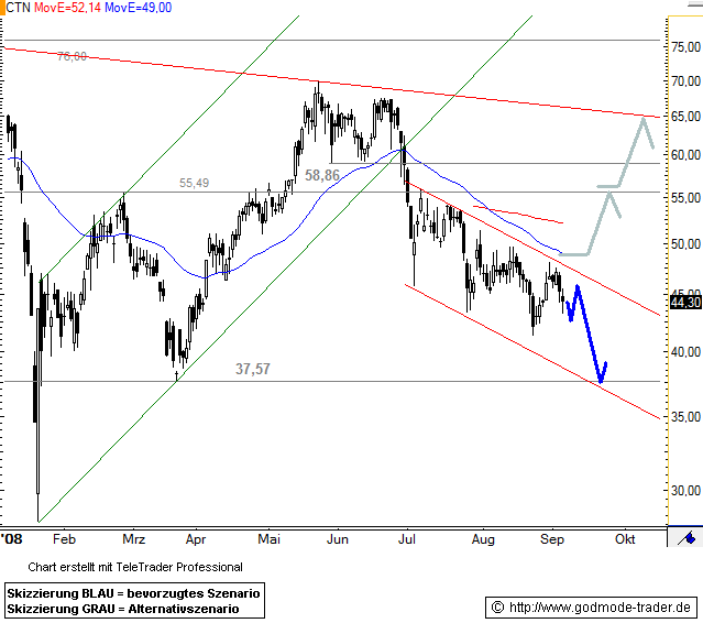 CENTROTHERM mit neuer Verkaufswelle - Wie weit kanns gehen? Datum 04.09.2008 - Uhrzeit 13:04 (© BörseGo AG 2007, Autor: Berteit Rene, Technischer Analyst, © GodmodeTrader - http://www.godmode-trader.de/) WKN: A0JMMN | ISIN: DE000A0JMMN2 | Intradaykurs: