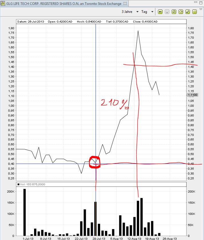 Schon erstaunlich, dass mit 1000 Stück der Kurs 10 Prozent hoch oder auch 10 Prozent runter geht.