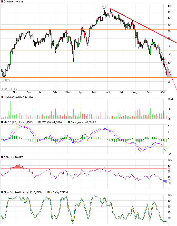 Hab heut übrigens NOCHMAL nachgekauft, zu 30,70. Das war jetzt aber wirklich das letzte Mal, das sag ich hier ganz deutlich. Erste Posi zu 34,80 - und dann immer im Abstand von ca. 1 EUR nachgekauft. Bin's jetzt aber leid! DREI Unterstützungslinien durchbrochen! Das kann nich wahr sein! Wo soll das bitteschön hinführen, hä? Und die nächste Unterstützung erst wieder bei 27,50? Also nochmal 10% runter? Das ist doch wohl ein Witz, oder? Das sind für mich unhaltbare Zustände und ich frage mich, wie lange die Politik hier noch zuschauen will! Der Staat hat für Gerechtigkeit UND SICHERHEIT zu sorgen! Wo bleibt hier die Sicherheit, wenn die Kurse einfach weiter und weiter abrutschen und keine Unterstützung hält? Hier müssen dringend Regelungen her! Dringend! Zum Beispiel: Ein Gesetz, dass in einem Monat nur max. zwei Unterstützunglinien durchbrochen werden dürfen. Oder auch ein Gesetz zur Einführung von "staatlichen Kurs-Sicherungs-Barrieren", wenn Unterstützungslinien zu weit wegliegen und deshalb weitere große Abstürze zu befürchten sind...