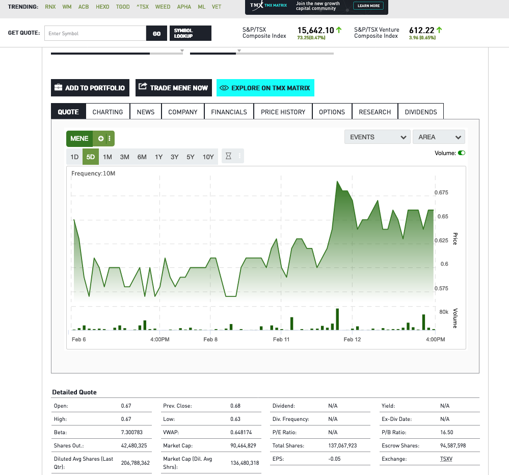 So wie ich das sehe hatte MENE eine Marktkapitalisierung von 85 Mio. CAD. Bei einem Anteil von 37% sind das fast 32 Mio CAD an Marktwert von MENE. Der intrinsische (!) Wert von Goldmoney war im letzten Quartal 1,42 CAD, der aktuelle Kurs liegt bei 1,65 CAD. Bei jeder Bestellung von MENE wird meines Wissens zudem Gold über Goldmoney gekauft, also profitiert man als Shareholder doppelt. Darüber hinaus verknappt Goldmoney die Anzahl der Aktien indem kontinuierlich Aktien zurückgekauft werden (eine kleine Menge, aber immerhin).
