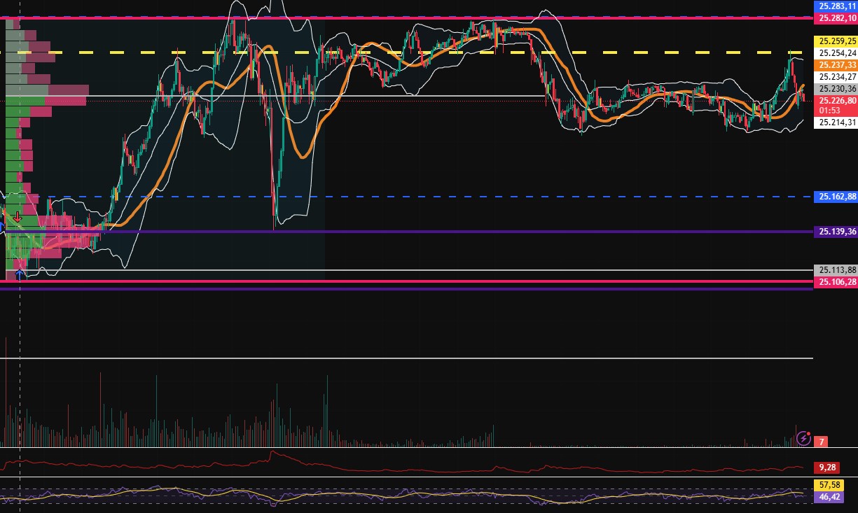 Eine Rallyfortsetzung auf neue Allzeithochs wäre heute möglich, im Bereich der Trendkanaloberkante bei 25.360 lägen potenzielle Ziele. Von dort aus könnte es dann zu Zwischenkorrekturen kommen, die entweder kurz auf hohem Niveau oder etwas ausgedehnter ausfallen. 24.980 - 25.000 oder 24.892 (Gap Close) wären hier mögliche Auffangzonen. Sehr tiefe Rücksetzer bis ans alte 2025er-Hoch bei 24.771 oder 24.639 bzw. 24.536 sind nur Alternativen, die jedoch ideal zum "Abfischen" wären. Das Überraschungsmoment liegt bei den Bullen, eine Übertreibung in Richtung 25.580 sollte auf dem Schirm bleiben.