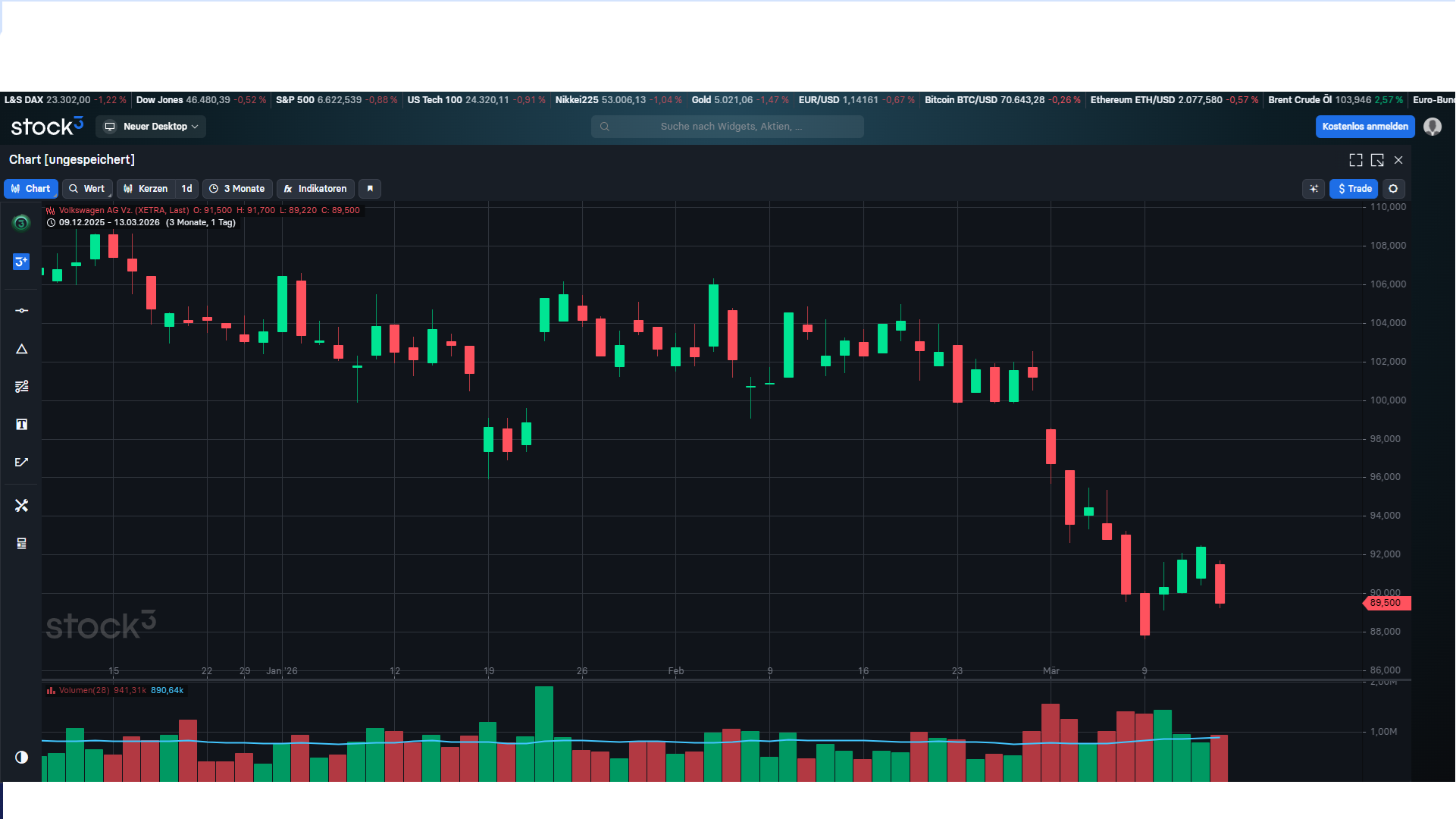 Volkswagen ging fast auf Tagestief aus dem Handel.....kein gutes Zeichen.....