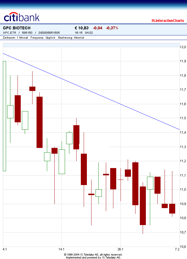 Zusätzlich wird GPC nicht wie früher mit guten Zahlen glänzen können, im Gegenteil ist zu befürchten, dass die Verluste doch sehr hoch sind (neue Projekt/Nasdac-Listing), und dann werden die Analysten draufhauen ohne Sinn und Verstand (da war ich mir mit Ecki einig!)