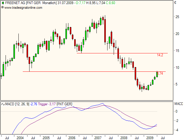 schafft es freenet dann die 10 euro marke nachhaltig zu überlaufen, sind darauffolgend kurse bis 10,50-12,00 im rahmen des möglichen, bevor eine weitere ausgedehnte konsoldierung den anstieg einbremst.