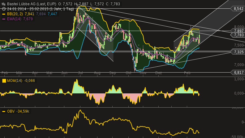 Die aktuellen Bestrebungen zum Ausbau des Digitalbereichs dürften sich erst mittel- und langfristig positiv in den Zahlen niederschlagen. GSC erwartet aber bereits im Geschäftsjahr 2015/16 die Rückkehr auf den Wachstumspfad. Trotz der soliden Geschäftsentwicklung sei der Aktienkurs seit dem Börsengang nicht richtig vom Fleck gekommen, dabei liege das KGV auf Basis der GSC-Gewinnschätzungen im kommenden Jahr lediglich bei 10,7. Darüber hinaus biete das Papier noch eine erfreuliche Dividendenrendite von 3,7 Prozent. Angesichts dieser Bewertungsrelationen empfehlen die Analysten die Bastei-Lübbe-Aktie mit einem Kursziel von 10,50 Euro zum Kauf.