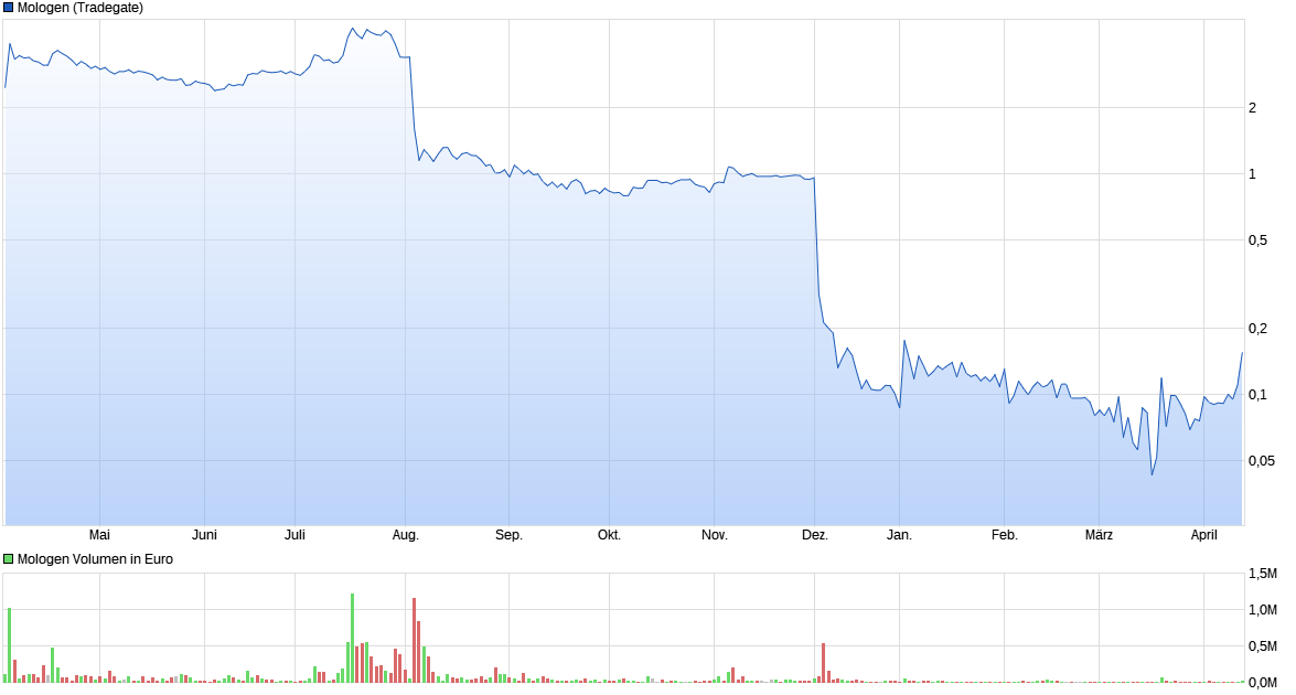 Hier bei Mologen erfolgt ein Ausbruch erst bei nachhaltiger Überwindung der 20Cent Marke.