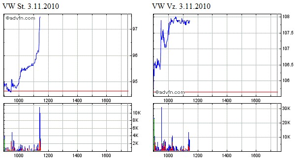 Ich betrachte und vergleiche es mal ganz simpel und vielleicht anspruchslos mit Daimler und BMW, da ich auch hier investiert bin. Mit dieser Gegenüberstellung kann ich für mich aber l e i d e r noch immer keine außergewöhnliche Entwicklung oder gar Rakete bei den ST finden. Seit FEB. ist Daimler von 33,--auf 50,-- gestiegen, also plus 17,-- oder über 50%.....BMW von 30,--auf ca 55,--,somit 25,--euro oder über 80 % !!. Selbst die VZ trotz KE von 60,-- auf ca 100,--, hier 65% ! Hier hampeln wir seit Feb bis Sep. plus/minus 5,-- um die 70iger Marke, fast unbeweglich trotz positiver Nachrichten oder DAXanstieg. Mit den 25,-- oder nur 35% sind wir hier noch immer das Schlußlicht !... Eine so große Spielwiese für die Leerverkäufer kann ich mir nicht vorstellen (wegen der 2 Jahre), denke wir hängen NOCH im Sog der VZ , ansonsten müßten wir unterstützt von Dax und guten Zahlen ungehindert weiterlaufen und profitieren. Wie allan bin ich gespannt, ob die ST bei einer Korrektur wieder überproportional geschmissen werden,...ansonsten stimme ich Liberal zu, hier die besten Aussichten...180,-- wär so mein Tip. -)) |