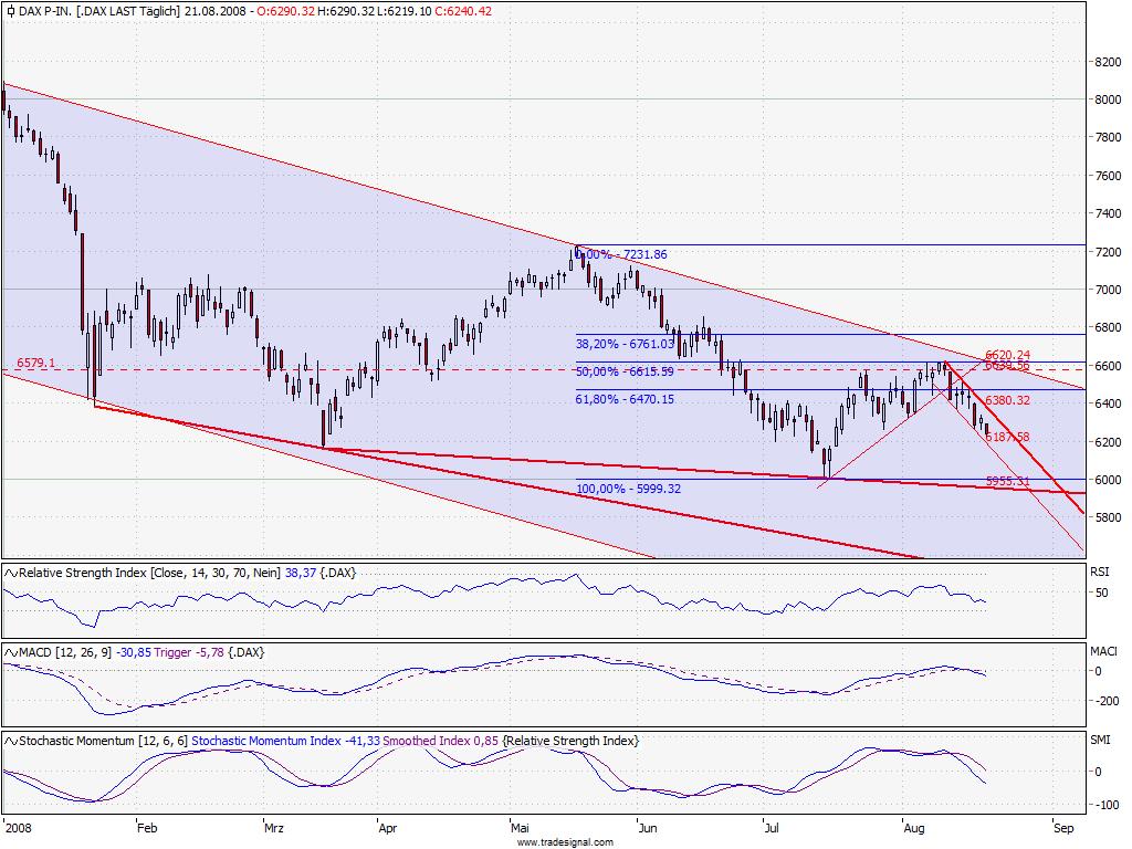 DAX - Tagesausblick für Donnerstag, 21. August 2008Datum 21.08.2008 - Uhrzeit 08:16 (© BörseGo AG 2007, Autor: Graefe Rocco, Technischer Analyst, © GodmodeTrader - http://www.godmode-trader.de/) WKN: 846900 | ISIN: DE0008469008 | Intradaykurs: