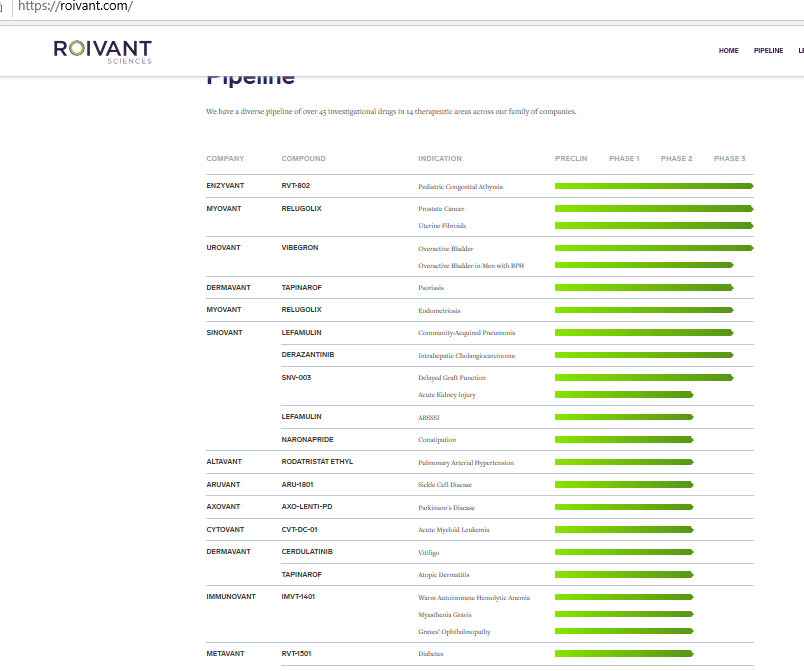 Auf der Roivant Homepage wird der Stand des DC Impfstoffes unter CVT-DC-01 als in P2 befindlich